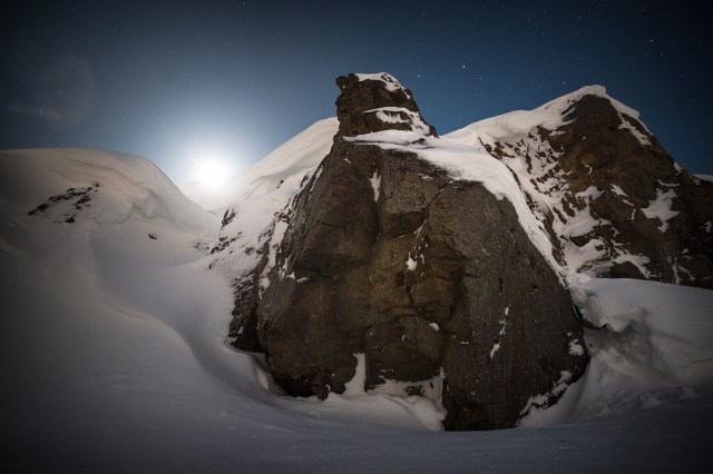 Anche l’ultimo fazzoletto di cielo libero – e con esso le stelle che vi avevano trovato rifugio – viene inghiottito dalla coltre di nubi: la neve si fa via via più aggressiva, sono fiocchi grossi e pesanti – piuttosto rari qui, dove la neve è spesso ghiacciata e portata dal vento – , silenziosi.