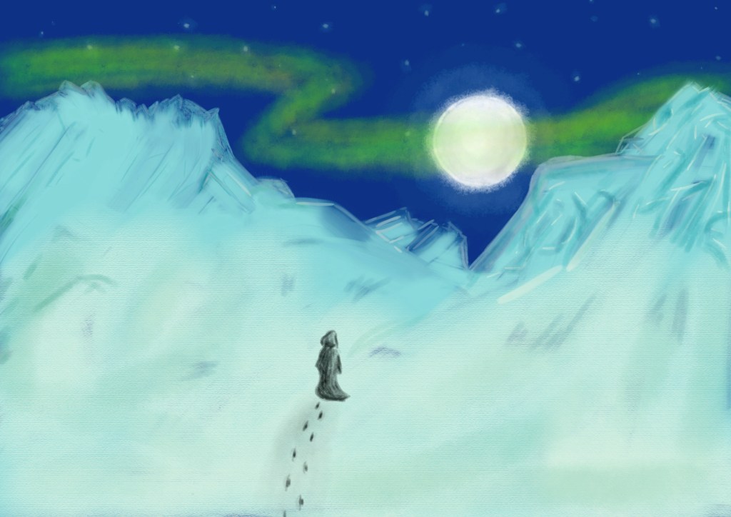 Ritornata in sè, aveva mosso qualche ultimo passo lungo il sentiero, cullata dai rami degli abeti che, nel buio della notte, sembravano arrivare a sfiorare il firmamento, poi, improvvisamente stanca, si era lasciata alle spalle la fitta foresta.